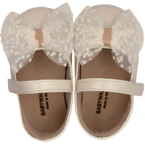Δερμάτινη Μπαλαρίνα με Τούλινο Φιόγκο σε Εκρού Χρώμα