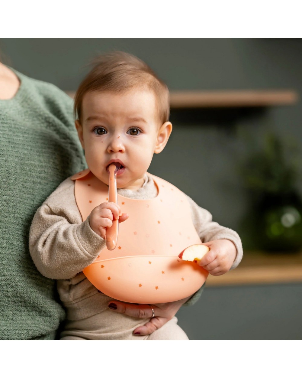 NATTOU SILICON. Σαλιάρα σιλικόνης με τύπωμα (ροδακινί)