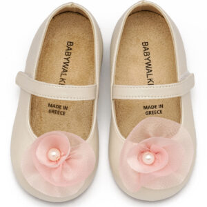 Γοβάκι Μονή Μπαρέτα με Διακοσμητικό Λουλούδι PRI2642 Εκρού Ροζ