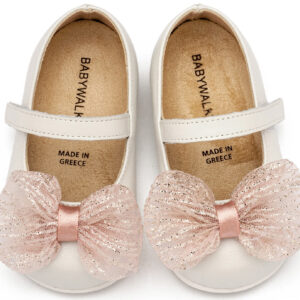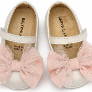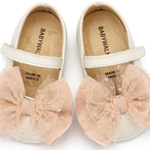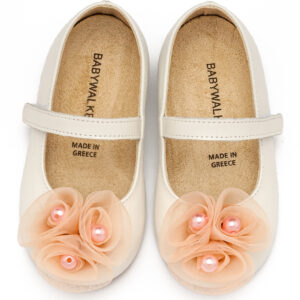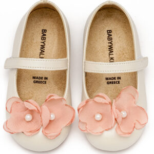 Γοβάκι Μονή Μπαρέτα Χρατς με Λουλούδια Οργάντζας BW4868-IVORY-PINK