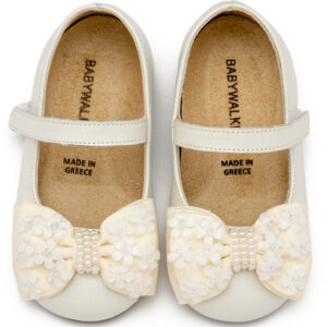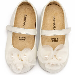 Γοβάκι Μονή Μπαρέτα Χρατς με Λουλούδια Οργάντζας BW4868-IVORY
