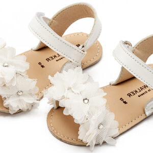 Πέδιλο με Λουλουδάκια και Πέρλες PRI2645 Εκρού