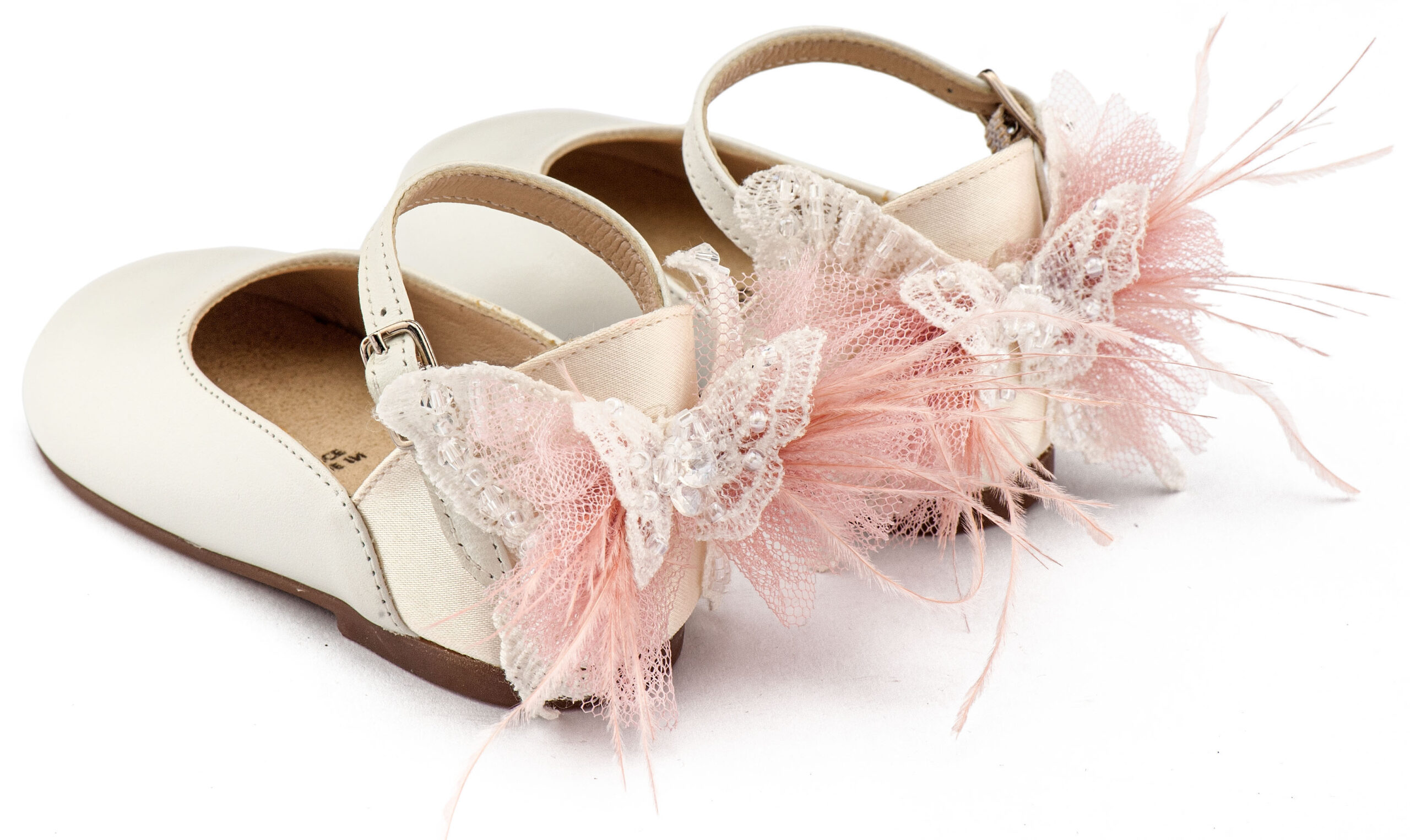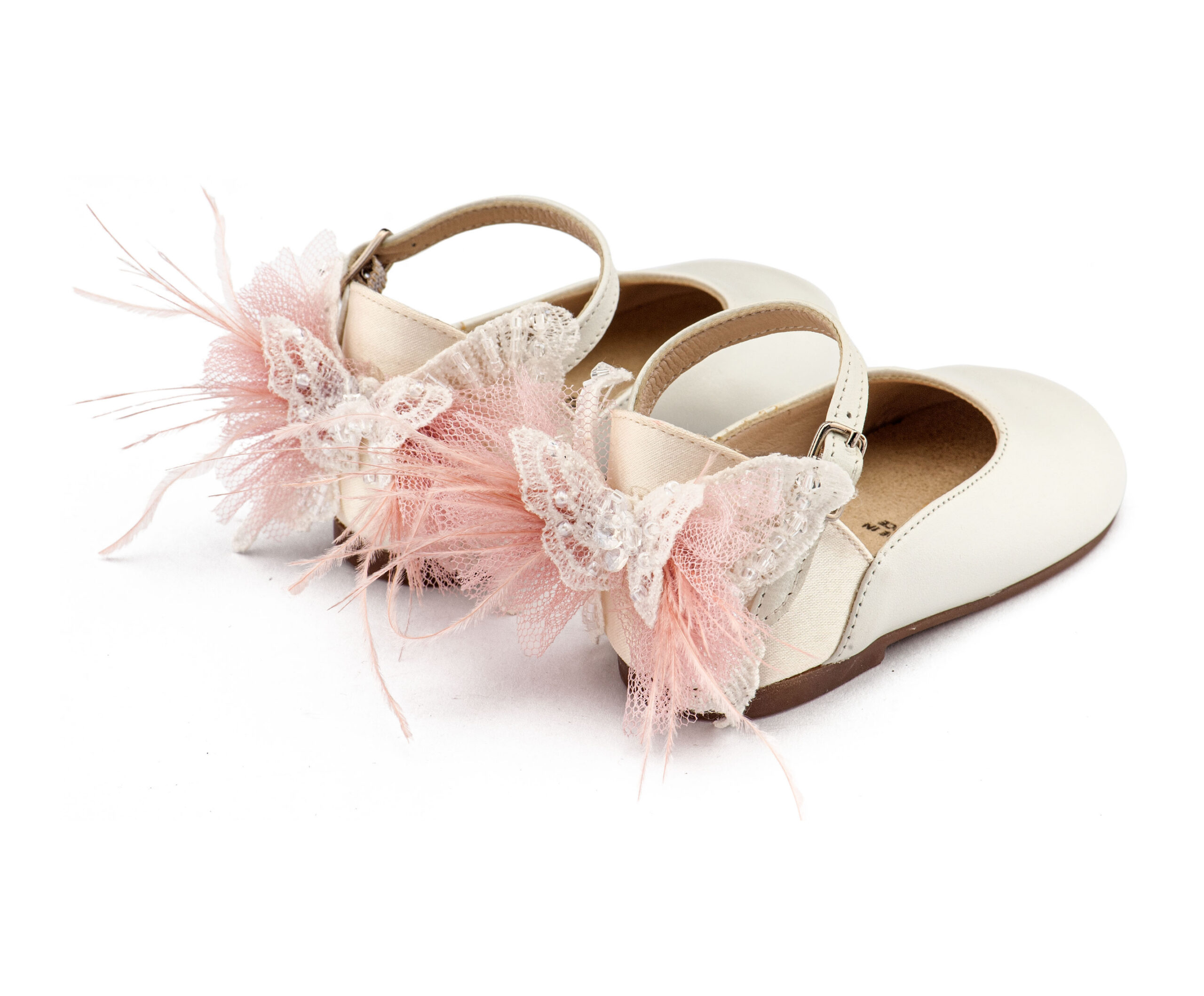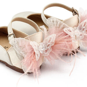 Γαλλικό Γοβάκι με Διακοσμημένη Φτέρνα Πεταλούδα BW4891 Εκρού-Ροζ