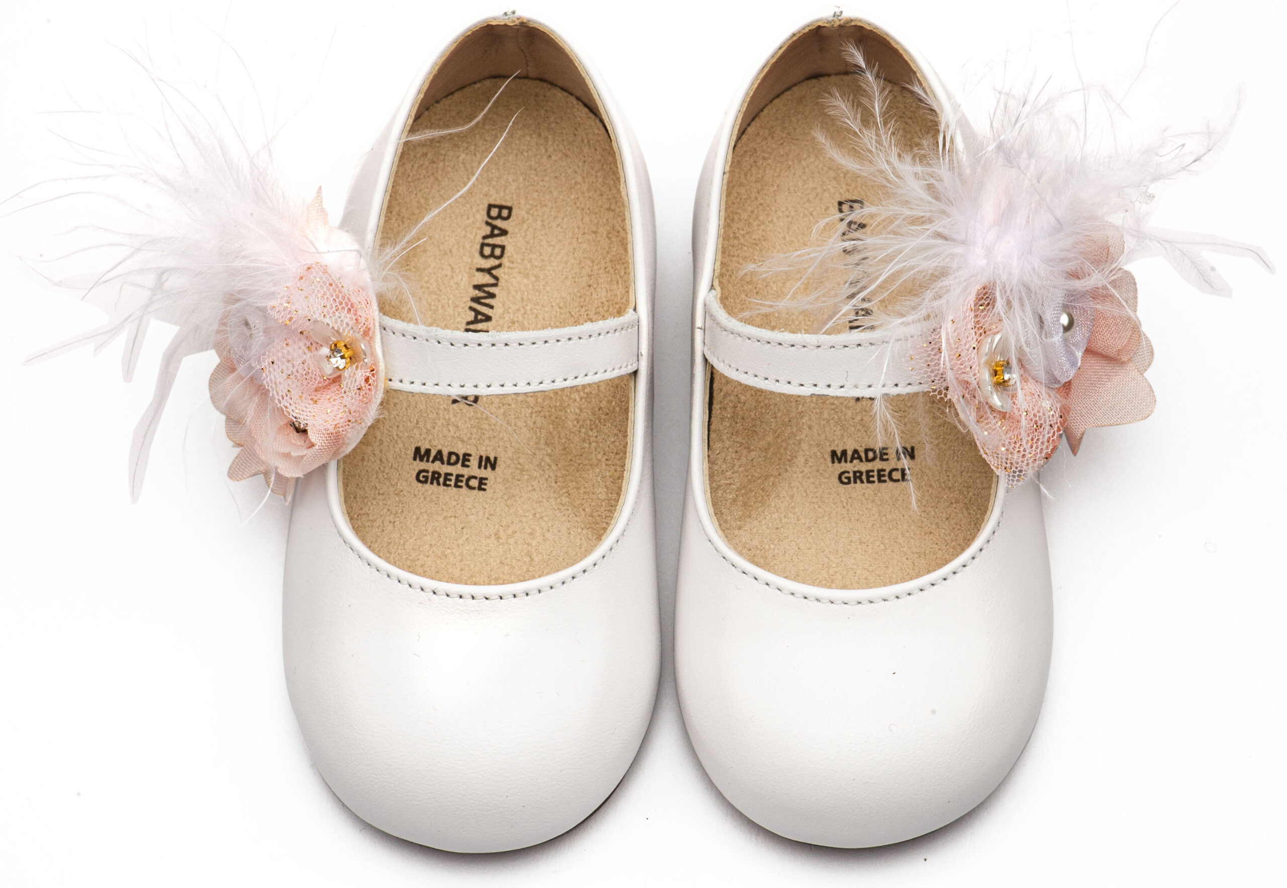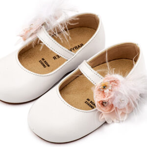 Γοβάκι με Λουλούδια και Πούπουλα BW4887 Λευκό-Ροζ
