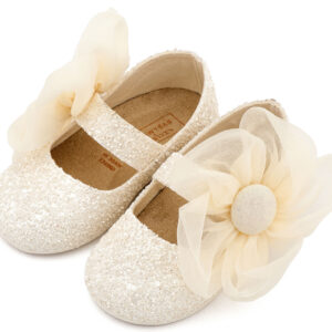 Γοβάκι Μονή Μπαρέτα Διακοσμημένο με Μεγάλο Λουλούδι EXC5899 Εκρού