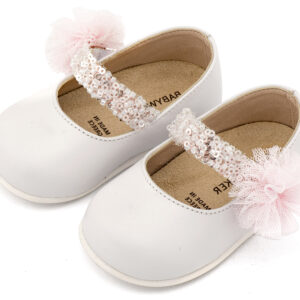 Γοβάκι Μονή Μπαρέτα Διακοσμημένο με Τρέσσα PRI2657 Λευκό-Ροζ
