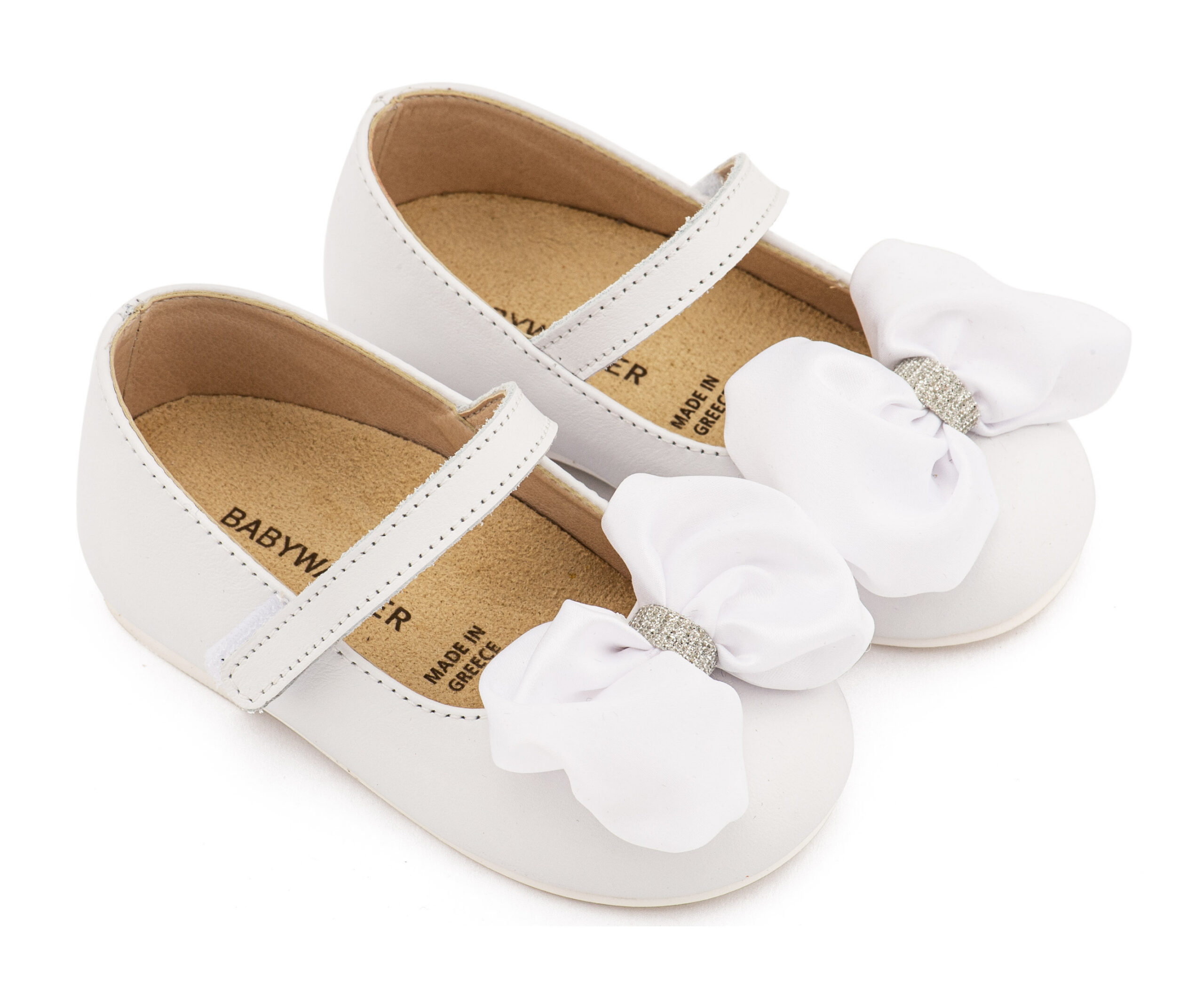 Γοβάκι Μονή Μπαρέτα με Σατέν Φιόγκο BW4893 Λευκό