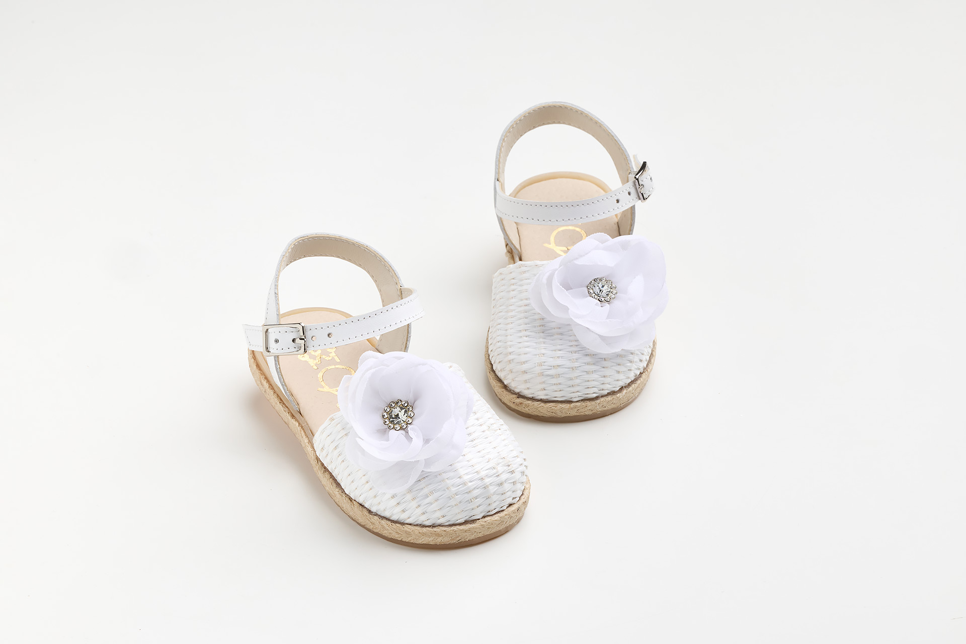Εσπαντρίγια περπατήματος σε λευκή ψάθα και λευκό δέρμα με χειροποίητο