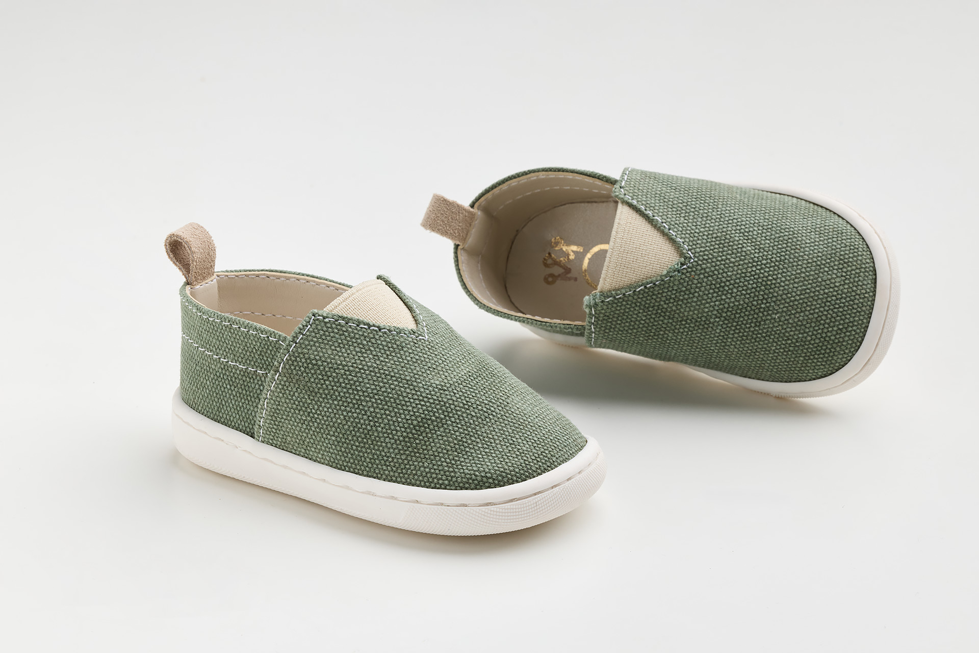 Παπουτσάκι – εσπαντρίγια σε λαδί καμβά, καστόρ δέρμα και λάστιχο.Ένα ιδιαίτερο παπούτσι για τους μικρούς μας φίλους που ξεκινάνε τα πρώτα τους βήματα και αναζητούν ένα στυλάτο παπουτσάκι για την ημέρα της βάπτισης . Το συγκεκριμένο , μπορεί να φορεθεί πολλές φορές μετά τη βάπτιση σε καθημερινές αλλά και σε ιδιαίτερες περιστάσεις ιδανικό για άνοιξη και καλοκαίρι.