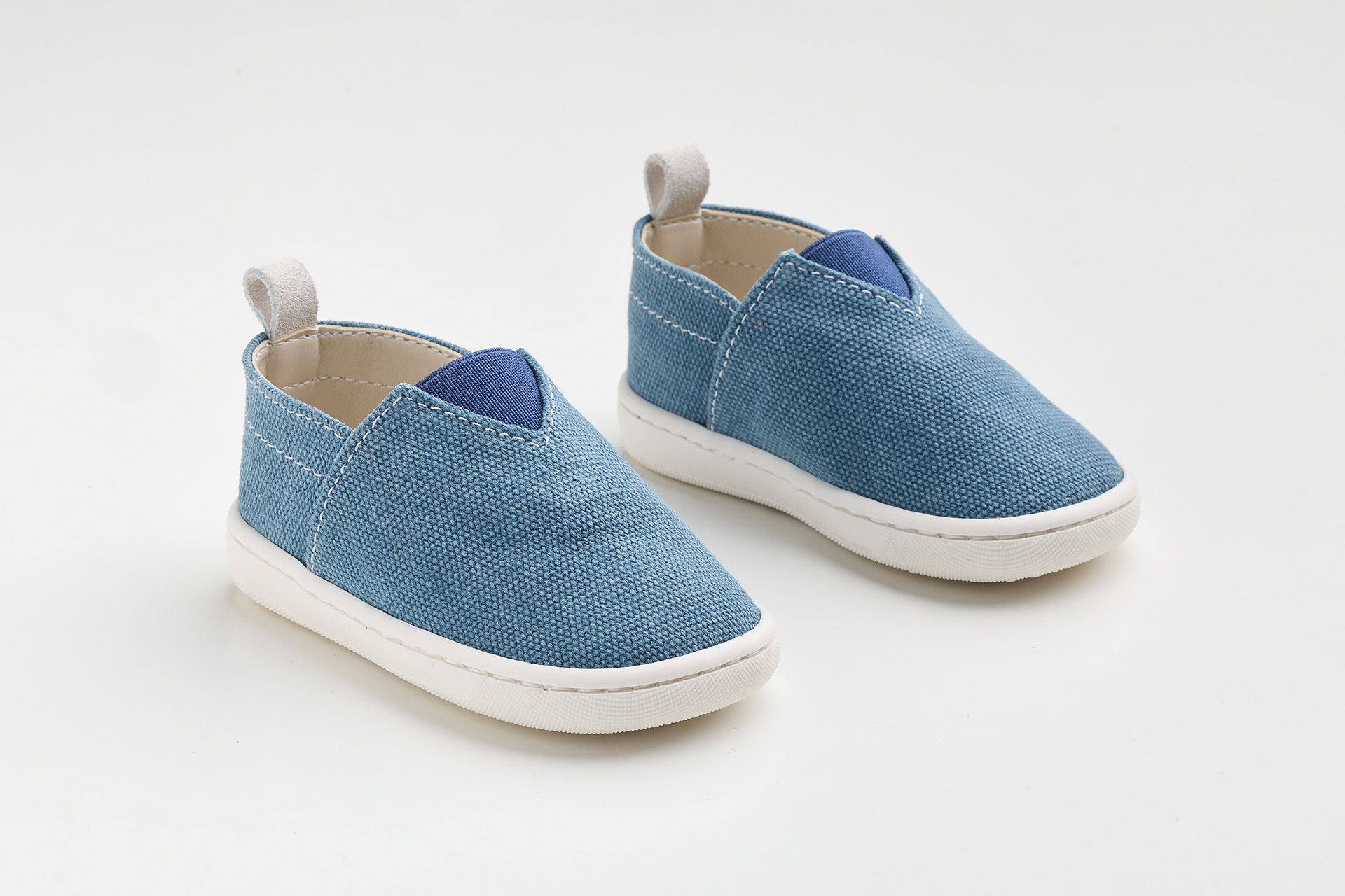 Παπουτσάκι – εσπαντρίγια σε μπλέ καμβά, καστόρ δέρμα και λάστιχο.Ένα ιδιαίτερο παπούτσι για τους μικρούς μας φίλους που ξεκινάνε τα πρώτα τους βήματα και αναζητούν ένα στυλάτο παπουτσάκι για την ημέρα της βάπτισης . Το συγκεκριμένο , μπορεί να φορεθεί πολλές φορές μετά τη βάπτιση σε καθημερινές αλλά και σε ιδιαίτερες περιστάσεις ιδανικό για άνοιξη και καλοκαίρι.