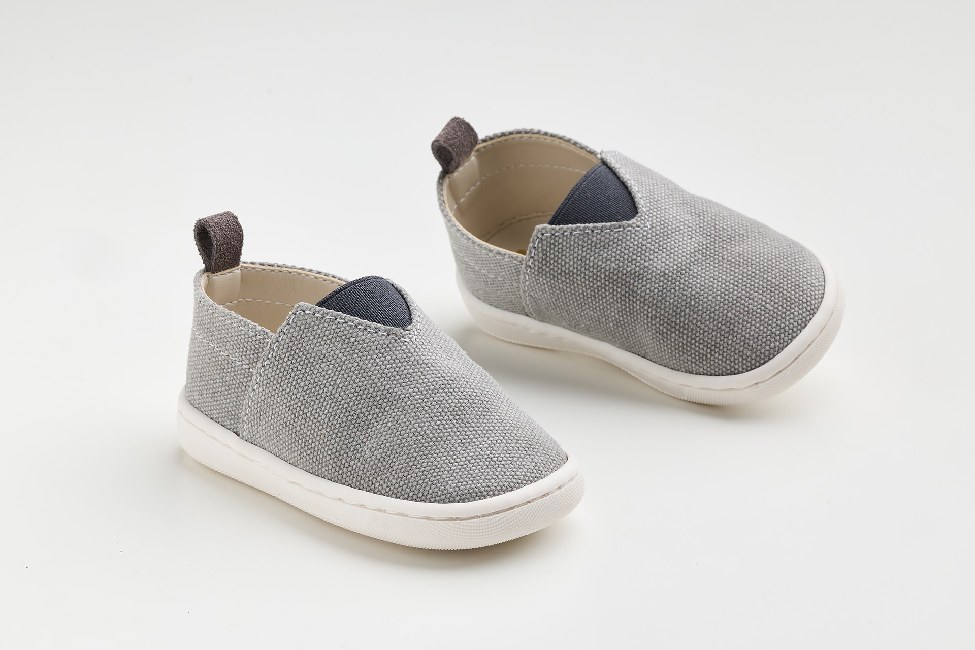 Παπουτσάκι – εσπαντρίγια σε γκρί καμβά, καστόρ δέρμα και λάστιχο.Ένα ιδιαίτερο παπούτσι για τους μικρούς μας φίλους που ξεκινάνε τα πρώτα τους βήματα και αναζητούν ένα στυλάτο παπουτσάκι για την ημέρα της βάπτισης . Το συγκεκριμένο , μπορεί να φορεθεί πολλές φορές μετά τη βάπτιση σε καθημερινές αλλά και σε ιδιαίτερες περιστάσεις ιδανικό για άνοιξη και καλοκαίρι.