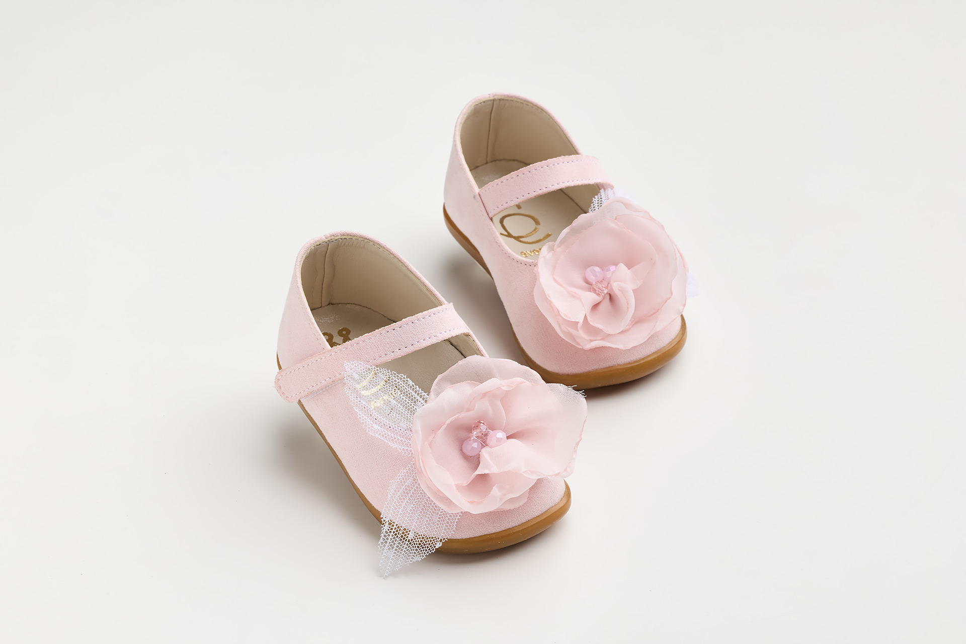 Μπαλαρίνα για τα πρώτα βήματα σε ρόζ συνθετικό καστόρ με χειροποίητο ροζ