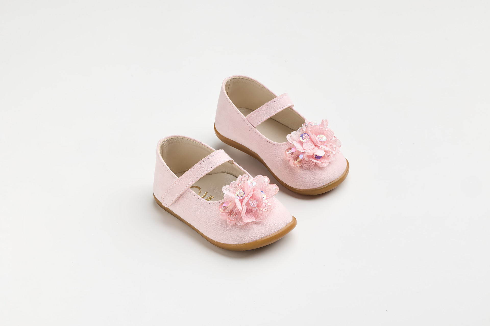 Μπαλαρίνα για τα πρώτα βήματα σε ροζ συνθετικό καστόρ διακοσμημένο με κρύσταλλα και παγιέτες. Μια ξεχωριστή και φανταχτερή επιλογή για κάθε σας εμφάνιση. Για τις μικρές μας κυρίες που ξeκινούν τα πρώτα τους βήματα.