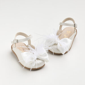 Μπαλαρίνα περπατήματος σε λευκό τεχνόδερμα με χειροποίητο λουλούδι και