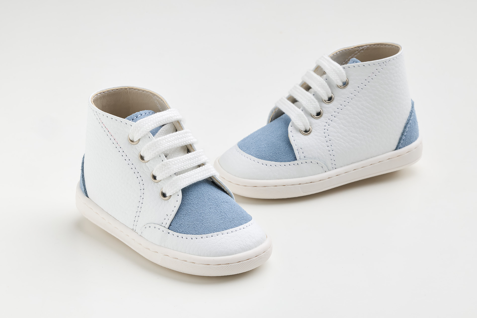 Μποτάκι σε λευκό  δέρμα και γαλάζιο καστόρ δέρμα.Ένα μοντέρνο και διαχρονικό παπούτσι για τους μικρούς μας φίλους που ξεκινάνε τα πρώτα τους βήματα και αναζητούν ένα στυλάτο παπουτσάκι για την ημέρα της βάπτισης . Το συγκεκριμένο , μπορεί να φορεθεί πολλές φορές μετά τη βάπτιση σε καθημερινές αλλά και σε ιδιαίτερες περιστάσεις για να δώσει μοναδικότητα και κομψότητα στο σύνολο και να προσφέρει άνεση , ιδανικό για άνοιξη και καλοκαίρι.