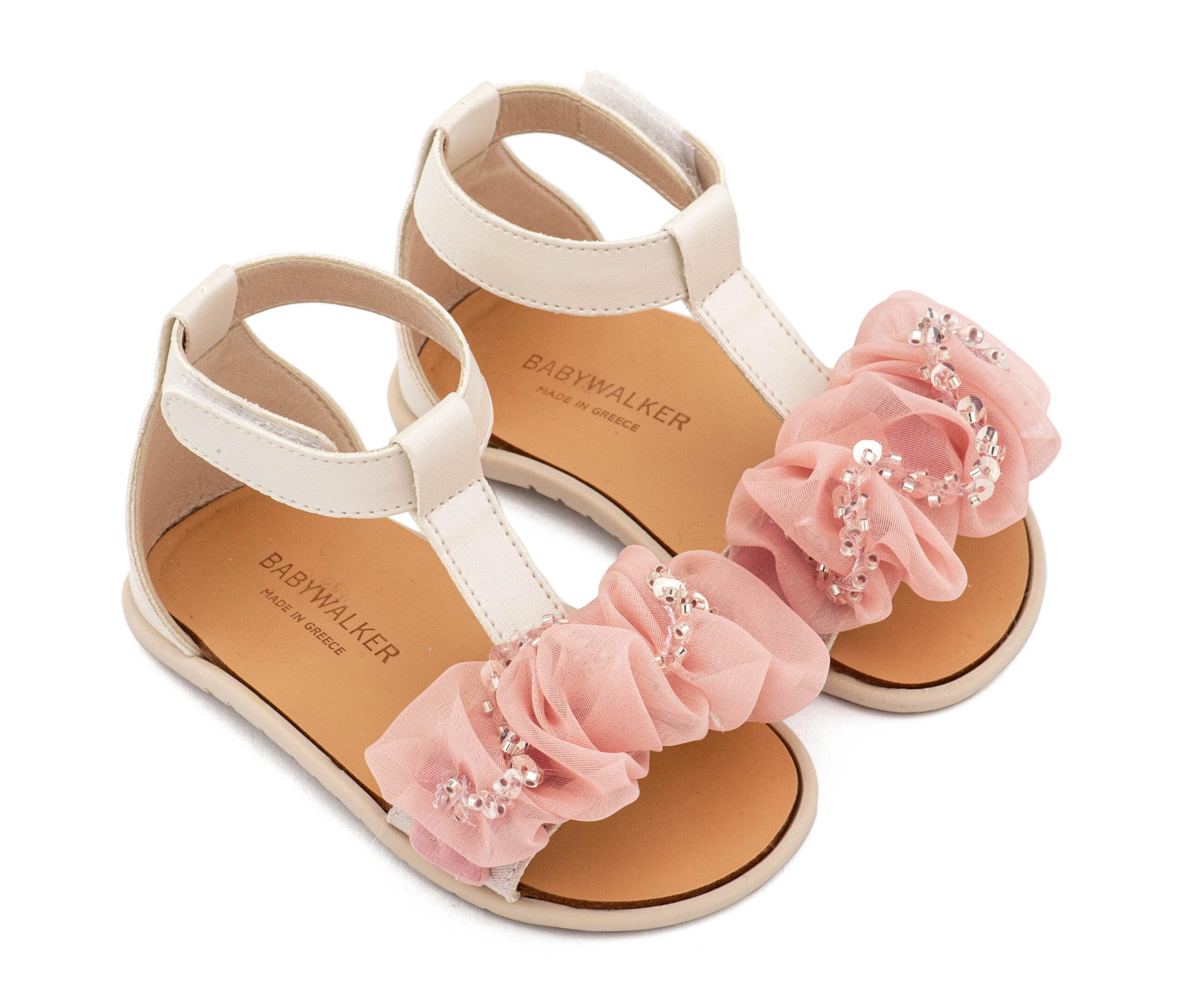Πέδιλο με Διακοσμητικό Οργάντζας BS3601 Εκρού-Ροζ