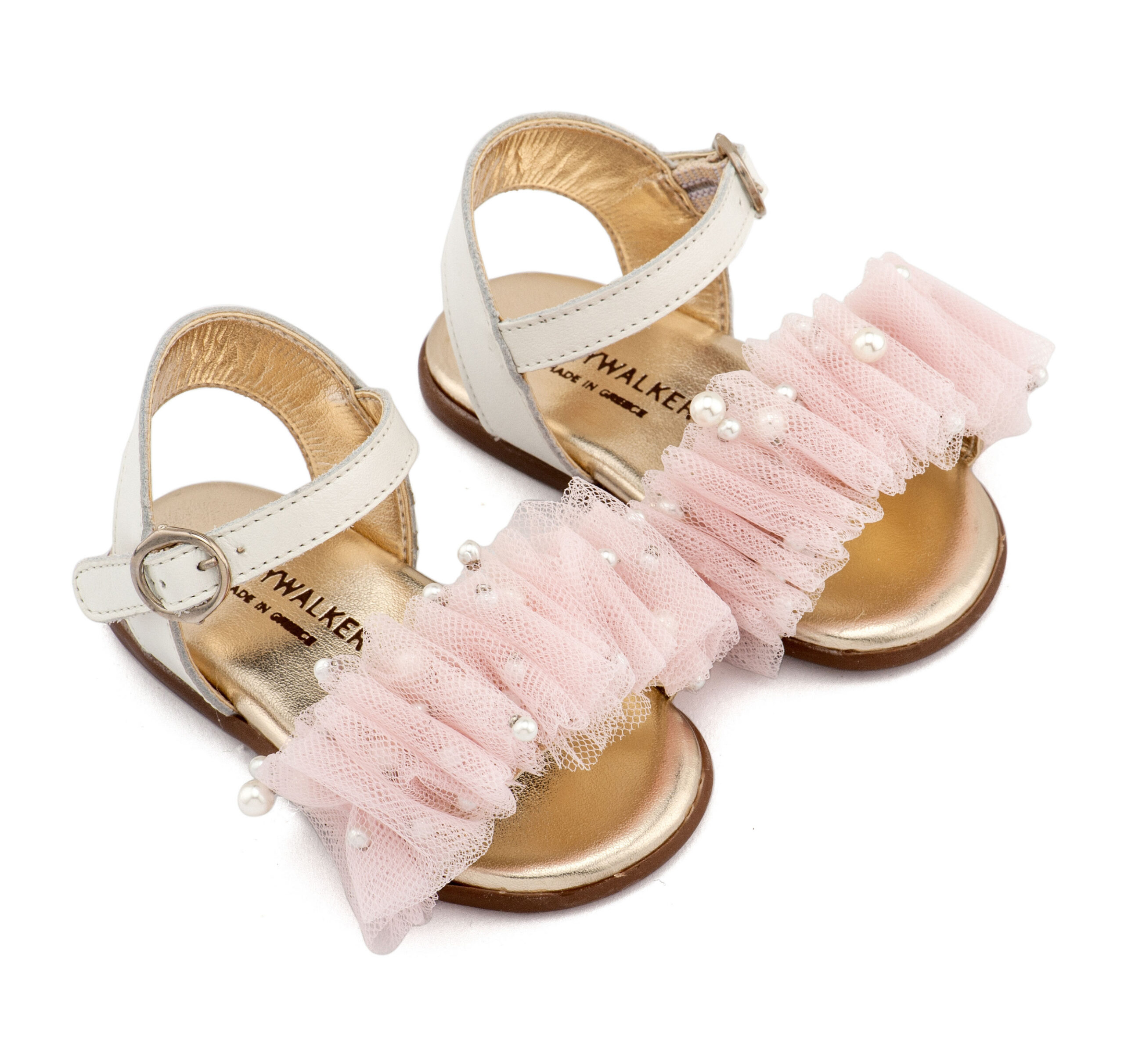 Πέδιλο με Χειροποίητο Διακοσμητικό από Τούλι PRI2656 Εκρού-Ροζ