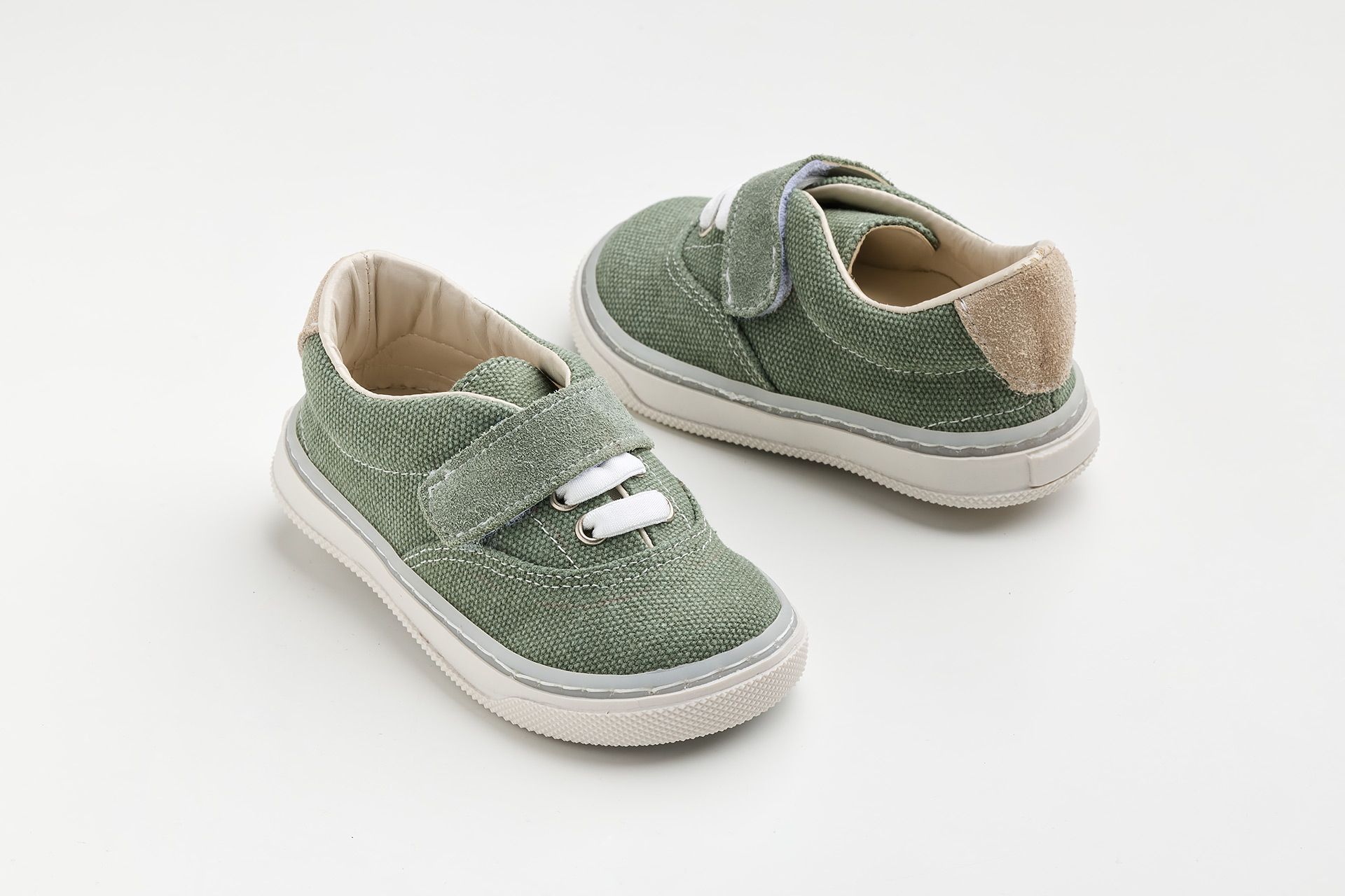 Παπουτσάκι περπατήματος σε λαδί ύφασμα, μπες και μέντα καστόρ δέρμα