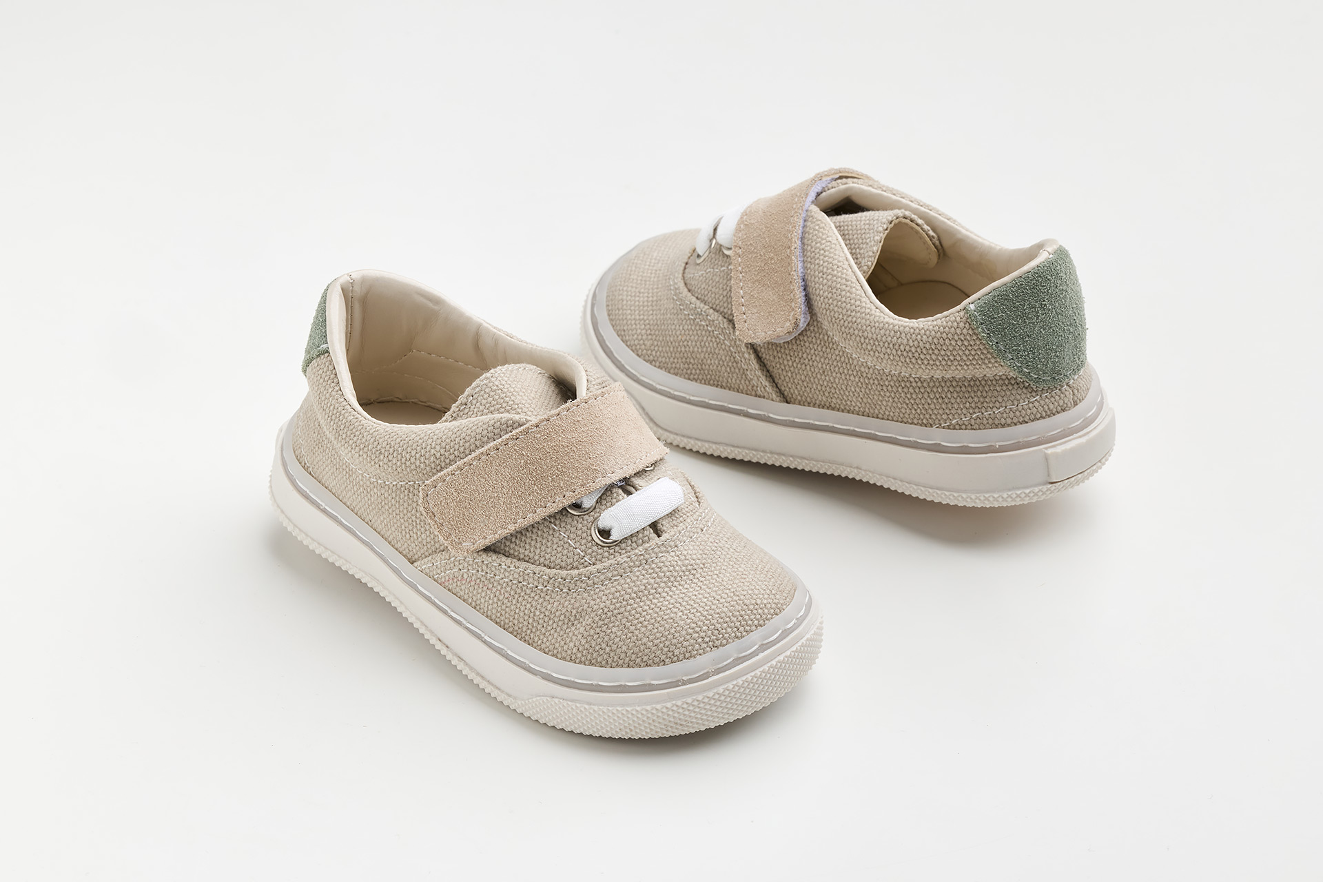 Παπουτσάκι περπατήματος σε μπεζ ύφασμα, μέντα και μπεζ καστόρ δέρμα