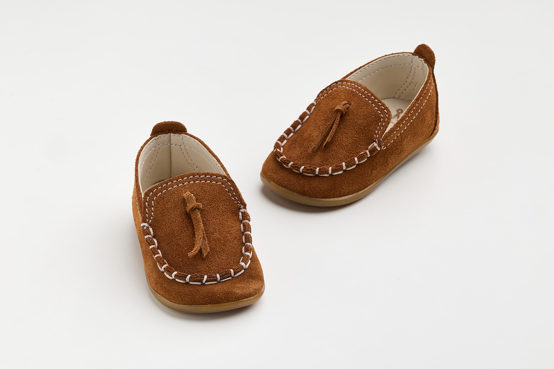 Παπουτσάκι πρώτα βήματα σε ταμπά καστόρ δέρμα. Ιδανικό για τους μικρούς μας φίλους που ξεκινάνε να κάνουνε τα πρώτα τους βήματα και θέλουν ένα μοντέρνο σύνολο για την ημέρα της βάπτισης αλλά και για πολλές άλλες εμφανίσεις