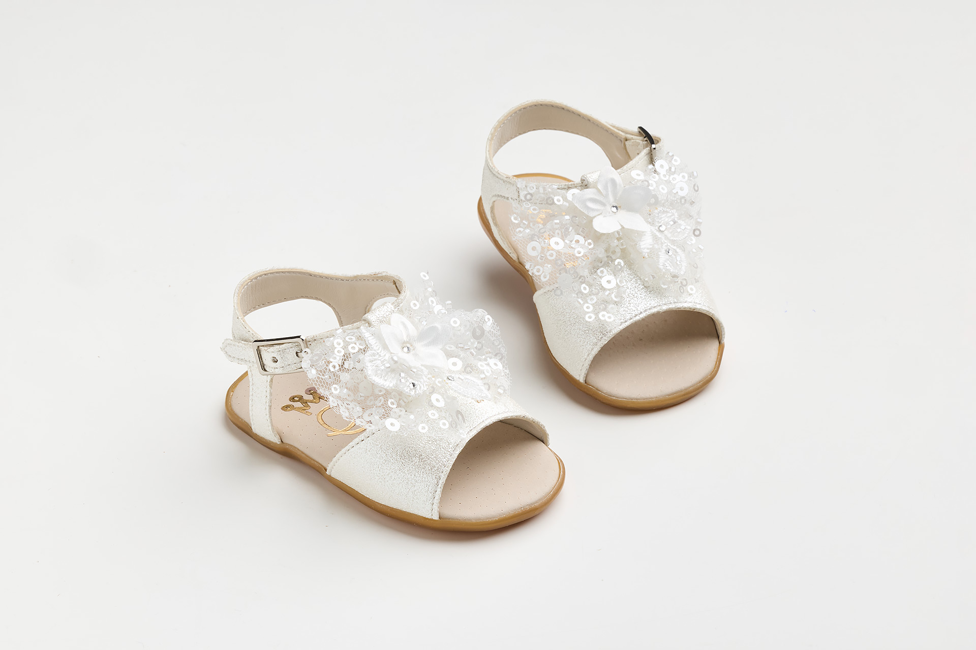 Σανδάλι για τα πρώτα βήματα σε off white γκλιτερ και χειροποίητο off white