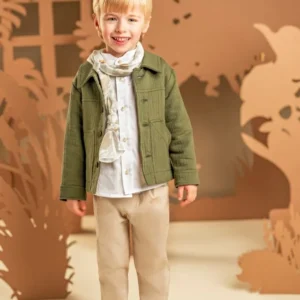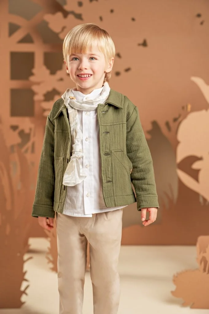 Ένα σύνολο γεμάτο φρεσκάδα, που εντυπωσιάζει με τον υπέροχο συνδυασμό χρωμάτων και υφών. Το σετ περιλαμβάνει παντελόνι από βαμβακερή καμπαρτίνα σε μπεζ απόχρωση και μπουφανάκι με γιακά και εξωτερικές τσέπες από γκοφρέ βαμβακερό ύφασμα σε χακί απόχρωση. Το λευκό βαμβακερό πουκάμισο με τον ιδιαίτερο Mao γιακά φωτίζει και ολοκληρώνει το σύνολο, ενώ το φλοράλ φουλάρι σε μπεζ αποχρώσεις με exclusive τύπωμα Baby Bloom προσθέτει μια ξεχωριστή πινελιά. Για το τελικό αποτέλεσμα, επιλέξτε ανάμεσα σε ψάθινο καπέλο ή υφασμάτινη τραγιάσκα, σύμφωνα με το προσωπικό σας στυλ