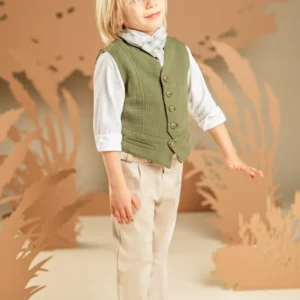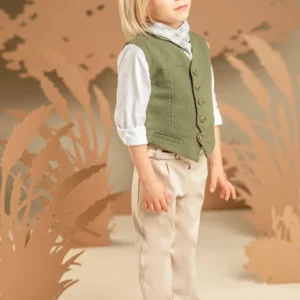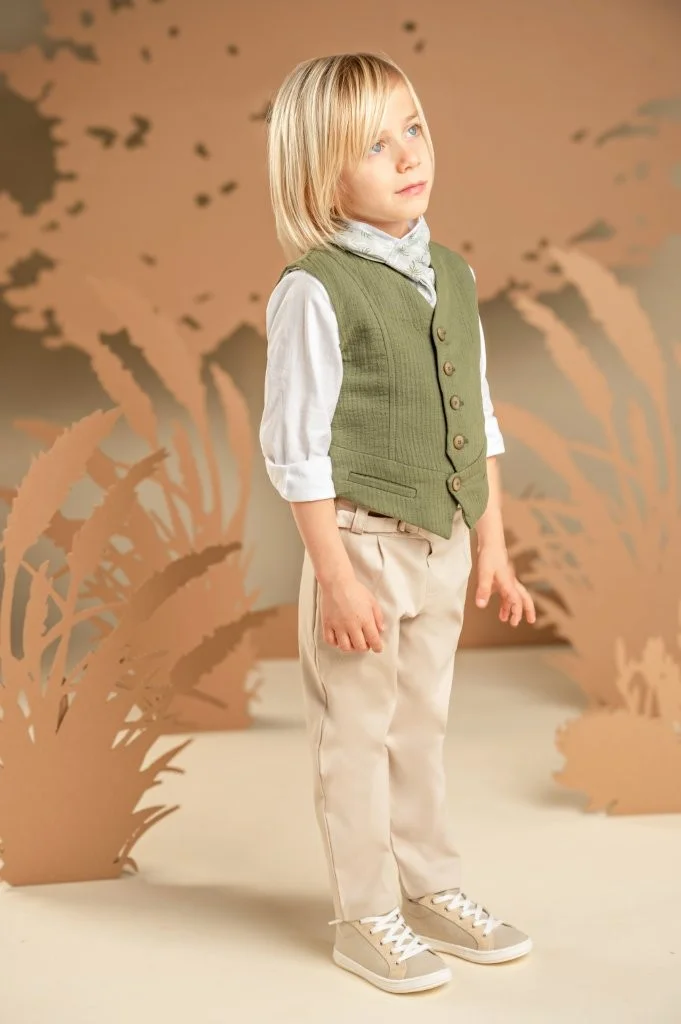Ένα σετ με μοντέρνο ύφος και προσεγμένες λεπτομέρειες, για μοναδικές εμφανίσεις. Το παντελόνι από μπεζ βαμβακερό καμβά με ιδιαίτερη ζώνη συνδυάζεται ιδανικά με το χακί γιλέκο σε βαμβακερό γκοφρέ ύφασμα με ξεχωριστό σχέδιο. Το λευκό βαμβακερό πουκάμισο με Mao γιακά και το εμπριμέ φουλάρι σε σιελ-χακί τόνους ολοκληρώνει το look. Για το τελικό αποτέλεσμα, επιλέξτε ανάμεσα σε ψάθινο καπέλο ή υφασμάτινη τραγιάσκα, ανάλογα με το προσωπικό σας στυλ.