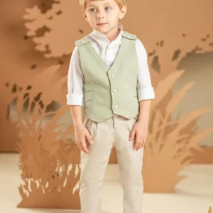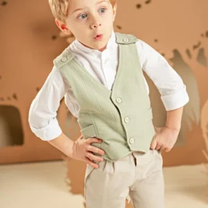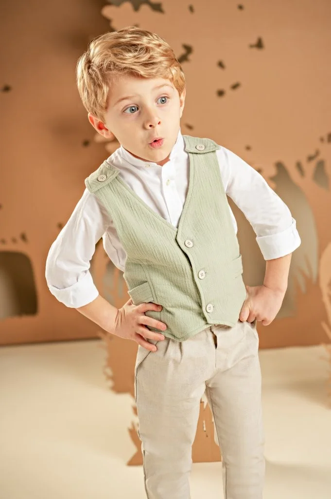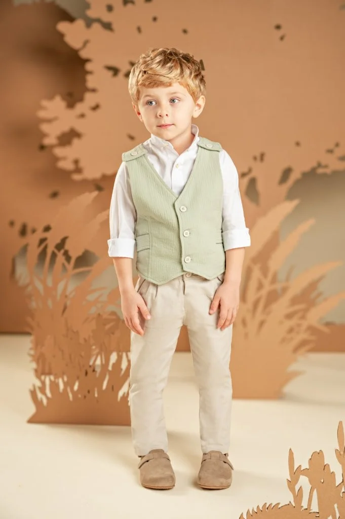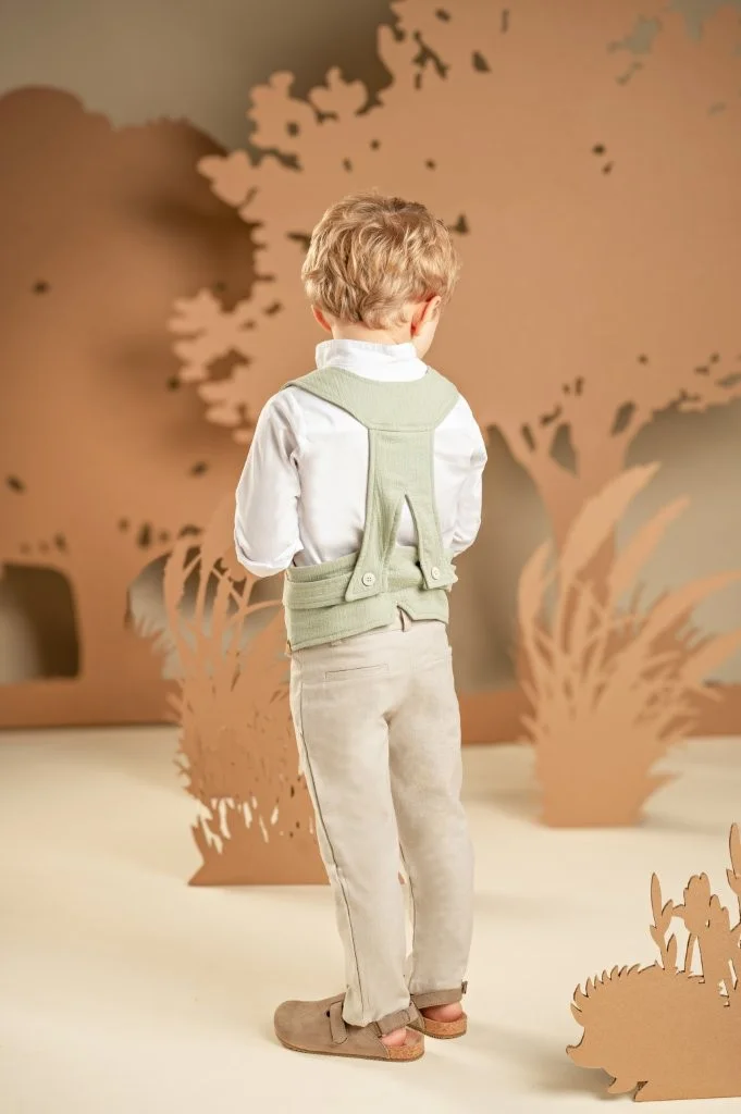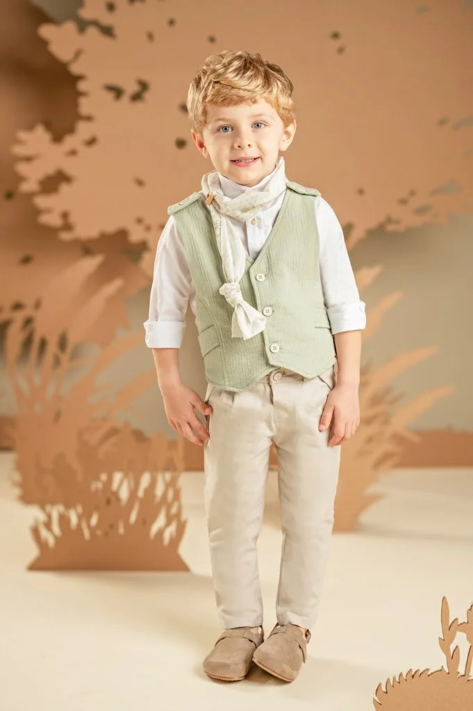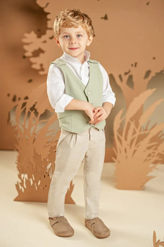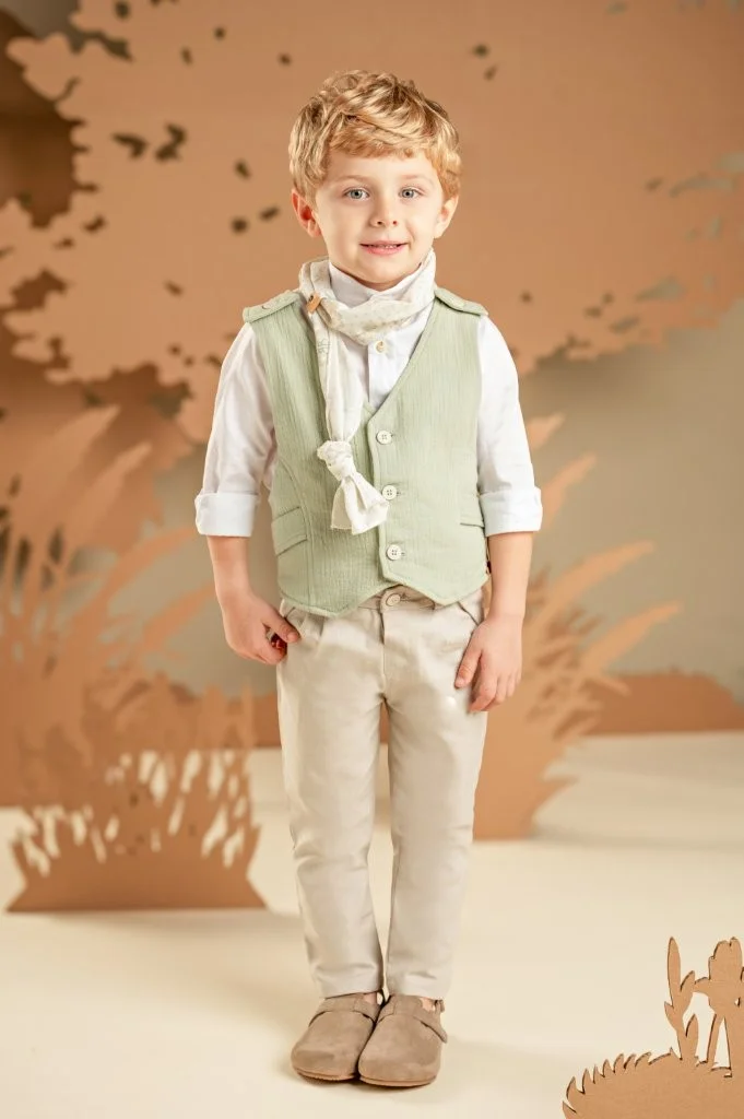 Ένα καταπληκτικό σετ για αυτούς που δεν συμβιβάζονται με τα συνηθισμένα. Παντελόνι σε μπεζ απόχρωση από βαμβακερό ύφασμα και μοναδικό γιλέκο με εκπληκτική πλάτη σε απόχρωση salvia, από βαμβακερό γκοφρέ ύφασμα. Συνδυάζεται με λευκό βαμβακερό πουκάμισο και φουλάρι φλοράλ σε μπεζ αποχρώσεις με exclusive τύπωμα Baby Bloom. Για το τελικό στυλ μπορείτε να επιλέξετε ανάμεσα στο ψάθινο καπέλο ή την υφασμάτινη τραγιάσκα, ανάλογα με την προτίμησή σας.