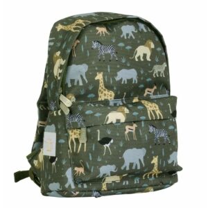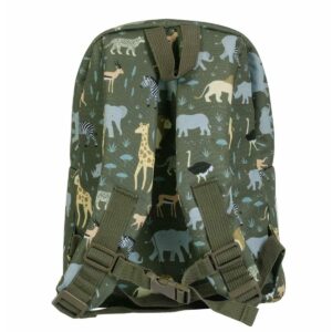 Σακίδιο πλάτης της εταιρείας A Little Lovely Company ιδανικό για ατέλειωτες βόλτες και για το σχολείο! Σε πράσινη απόχρωση με σχέδιο ζωάκια της ζούγκλας και χωρητικότητα 7 λίτρα. Είναι κατασκευασμένο από ελαφρύ πολυεστερικό ύφασμα και PEVA. Έχει μία κύρια θήκη με μεγάλο χώρο που περιλαμβάνει μια εσωτερική μικρότερη τσέπη. Στο μπροστινό μέρος έχει μία ακόμα τσέπη, κατάλληλη για να βάζετε μικρά αντικείμενα. Διαθέτει ρυθμιζόμενους ιμάντες ώμου με επένδυση για άνεση και έξτρα λουρί κάτω από το στήθος που κουμπώνει για να τους διατηρεί σταθερούς. Στο πάνω μέρος του σακιδίου έχει λαβή για εύκολο πιάσιμο και μεταφορά