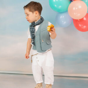 Ο Karolos είναι ένα λευκό με μέντα κοστούμι που θα αγαπήσετε. Γιλέκο σε συνδυασμό ψαροκόκκαλου ψάθα Ιταλίας. Πουκάμισο λευκό 100% cotton. Παντελόνι 100% λινό λευκό. Αξεσουάρ: Δερμάτινα κορδόνια με ασημένια μοτίφ συμπληρώνουν το σύνολο. Παπιόν ξύλινο και soft touch φουλάρι από 100% cotton. Καπέλο λευκό με φαρδιά τρέσσα σε μέντα χρώμα.