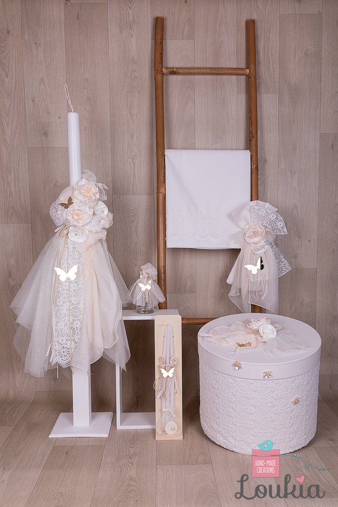 Χειροποίητο Σετ βάπτισης για Κορίτσι με Θέμα Πεταλούδα | E604 Loukia
