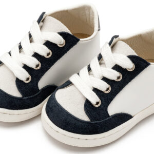 Δίχρωμο Δερμάτινο Δετό Sneakers σε Λευκό Μπλε Χρώμα