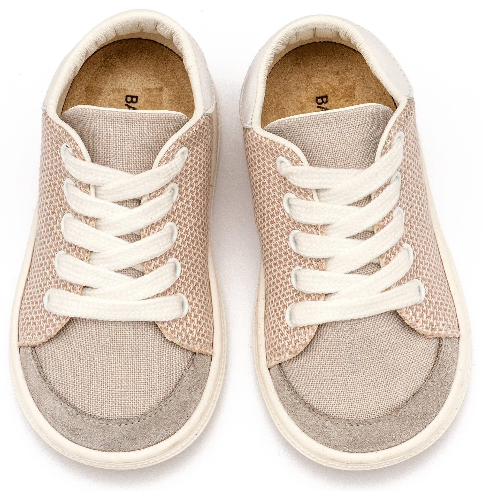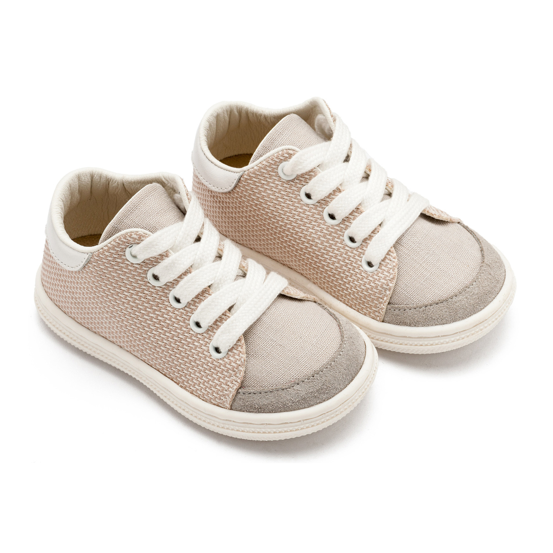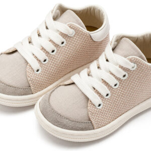Δετά Δίχρωμα Σνίκερς από Ύφασμα και Συνθετικό Δέρμα σε Μπεζ Γκρι Χρώ
