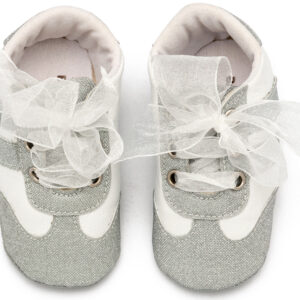 Δερμάτινα Δετά Sneakers με Κορδέλα Οργάντζα σε Ασημί Χρώμα