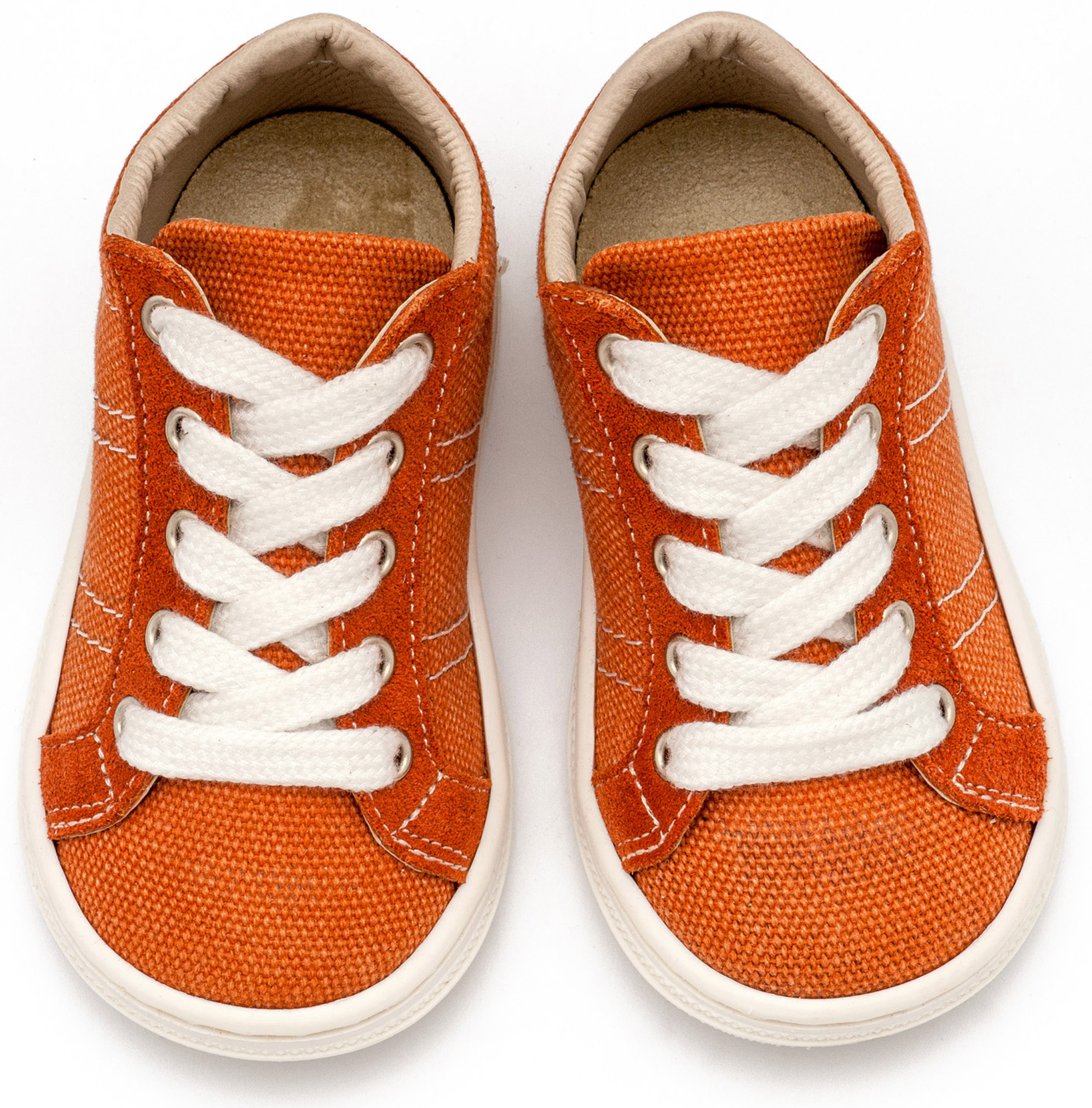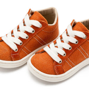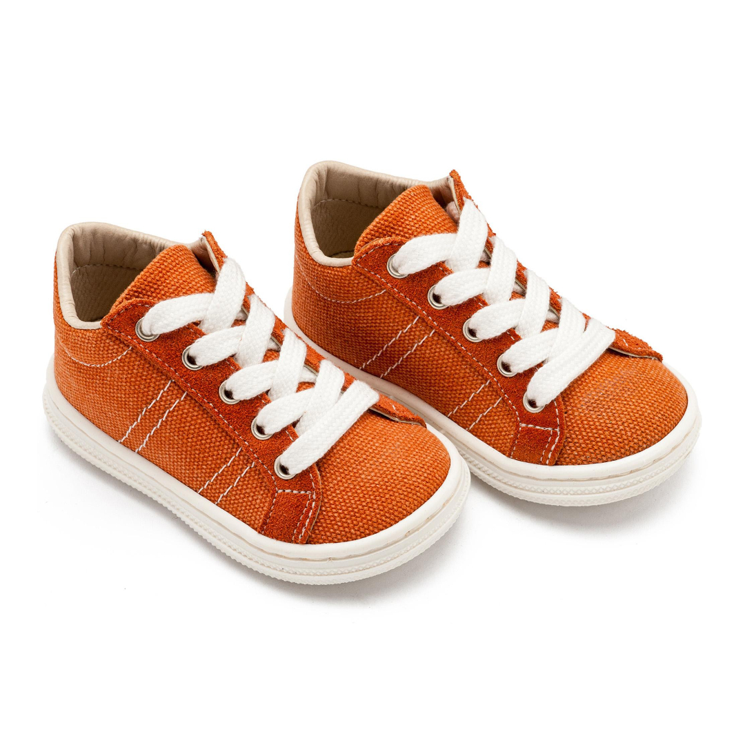 Δίχρωμα Υφασμάτινα Δετά Σνίκερ από Ύφασμα και Δέρμα σε Κεραμυδί Χρώμα
