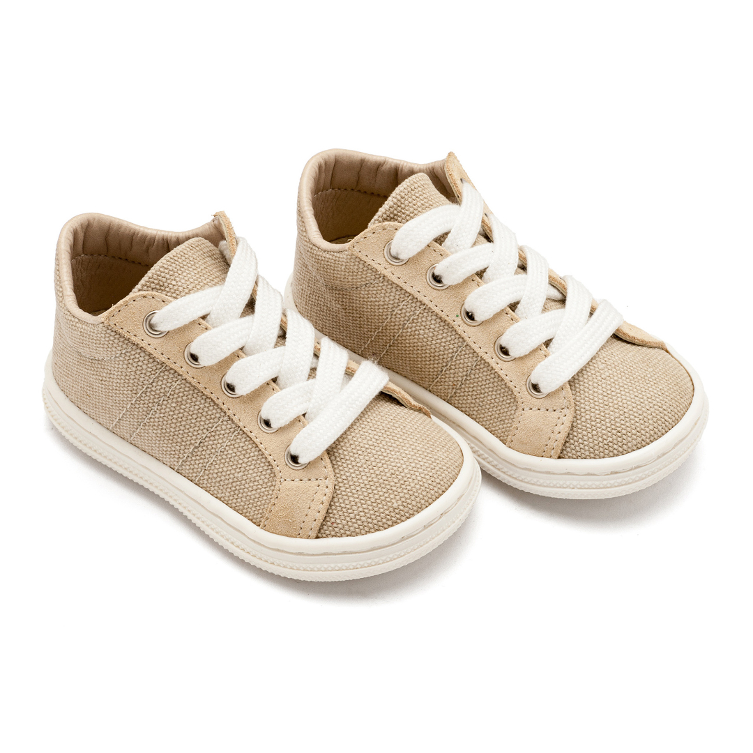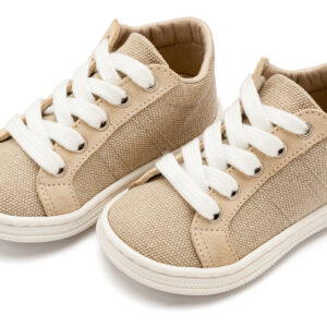 Δίχρωμα Υφασμάτινα Δετά Σνίκερ από Ύφασμα και Δέρμα σε Μπεζ Χρώμα