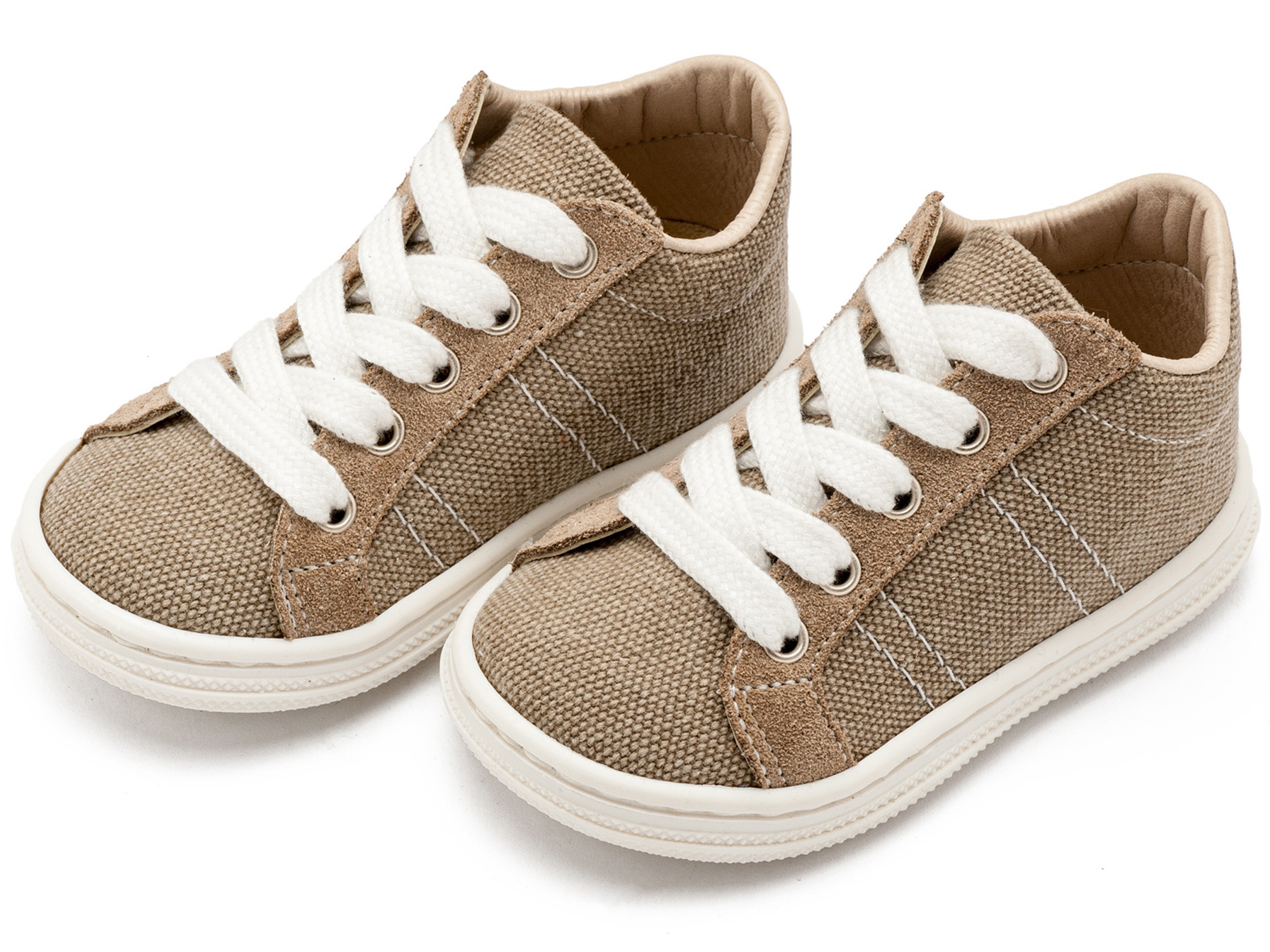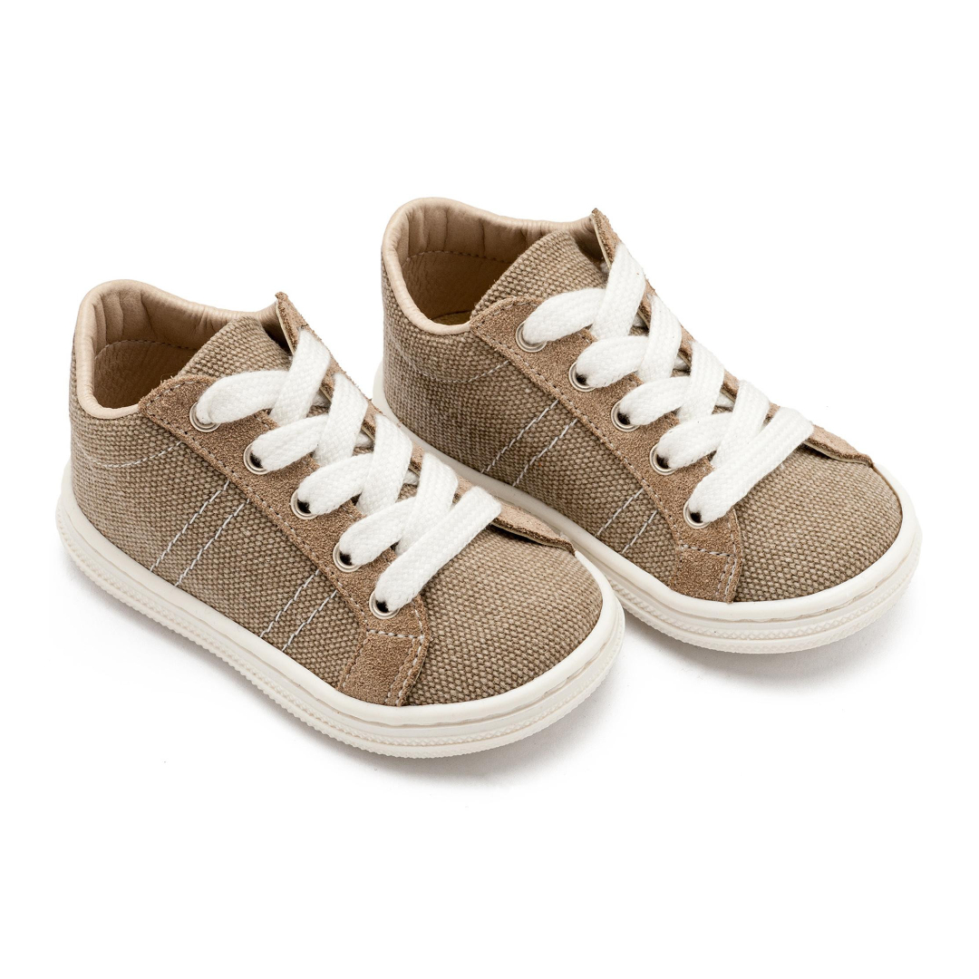 Δίχρωμα Υφασμάτινα Δετά Σνίκερ από Ύφασμα και Δέρμα σε Πούρο Χρώμα