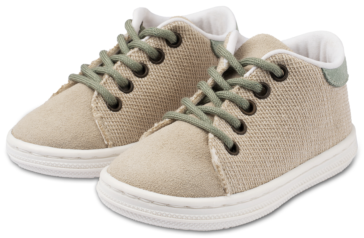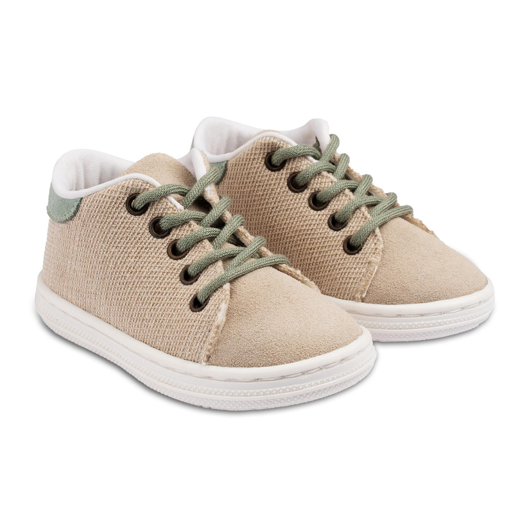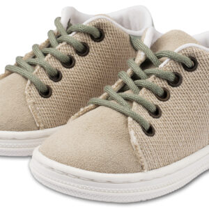 Δετό Δίχρωμο Σνίκερ με Δέρμα και Ύφασμα σε Μπεζ Μέντα Χρώμα