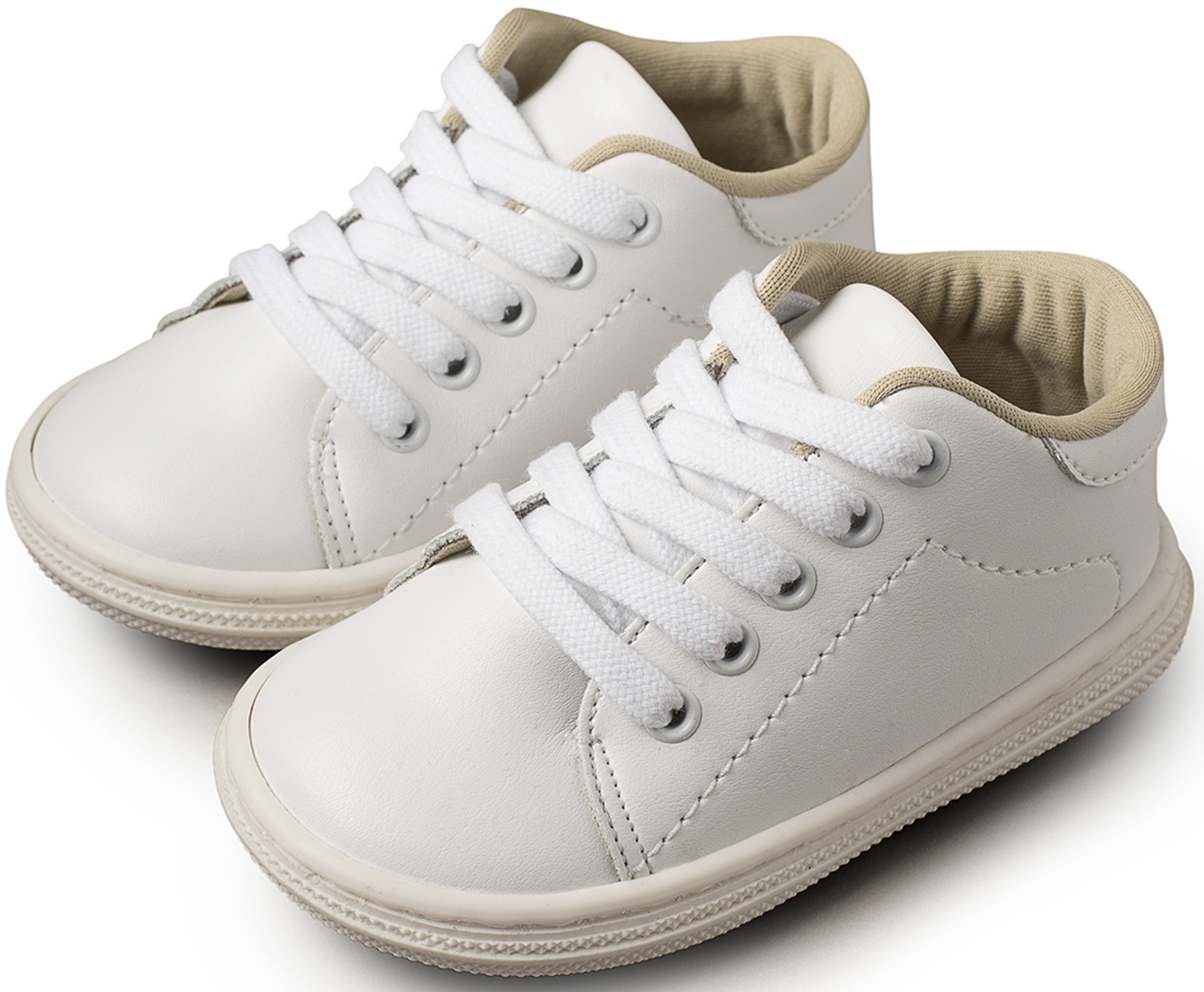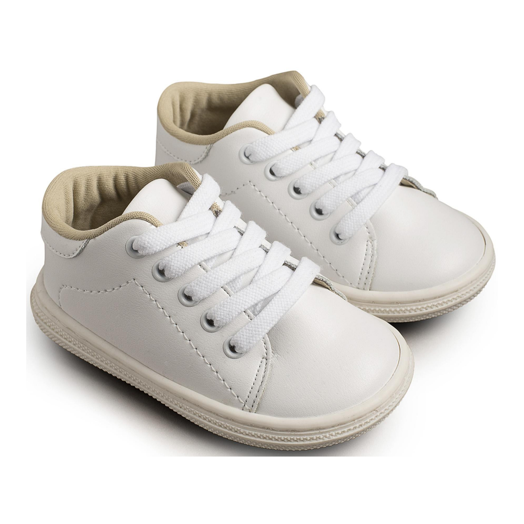 Δετό Σνίκερ με Συνθετικό Δέρμα σε Λευκό Χρώμα