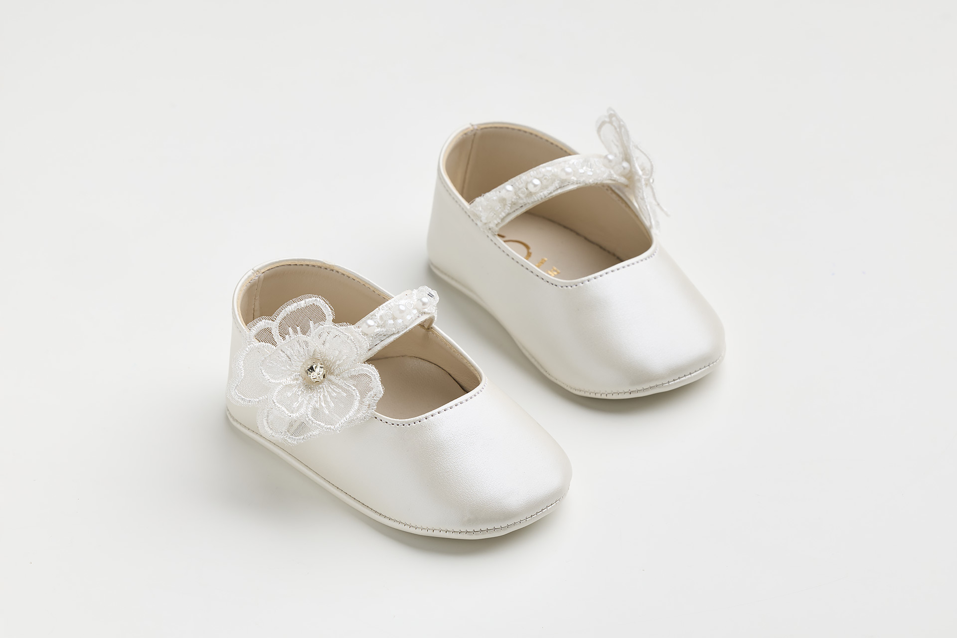 Μπαλαρίνα αγκαλιάς σε εκρού τεχνόδερμα με χάντρες, πέρλες και off white