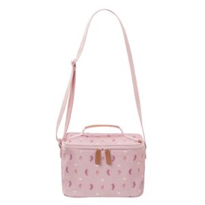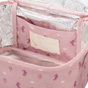 Διαθέτει μεγάλο χώρο ώστε να χωρέσετε γενναιόδωρα γεύματα και ροφήματα μέσα σε αυτό, μια τσεπούλα για τα μαχαιροπίρουνά σας και ένα ταμπελάκι για να γράψετε το όνομα του παιδιού για να μπορέσει να ξαναβρεί τον …κηδεμόνα του σε περίπτωση απώλειας.