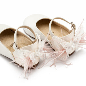 Γαλλικό Γοβάκι με Διακοσμημένη Φτέρνα με Υφασμάτινη Πεταλούδα σε Εκρού Χρώμα