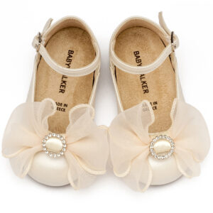 Γαλλικό Γοβάκι με Φιόγκο Οργάντζας και Στρασένια Τόκα σε Εκρού Χρώμα