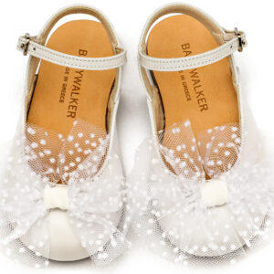 Δερμάτινο Γαλλικό Σαμπό με Χειροποίητο Τούλινο Φιόγκο σε Λευκό Χρώμα