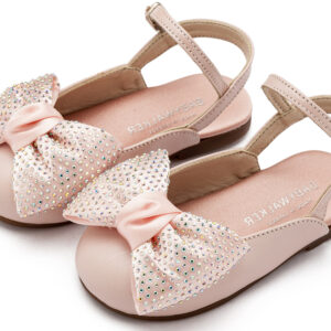 Γαλλικό Δερμάτινο Σαμπό με Μεγάλο Φιόγκο Στρας σε Ροζ Χρώμα