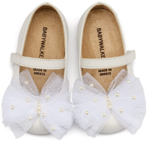 Γοβάκι με Τούλινο Χειροποίητο Φιόγκο και Πέρλες σε Λευκό Χρώμα
