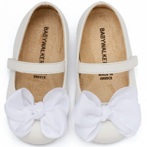 Γοβάκι Μονή Μπάρέτα με Χειροποίητο Gros Grain Φιόγκο σε Λευκό Χρώμα
