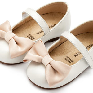Δερμάτινο Γοβάκι Μονή Μπαρέτα Χρατς με Σατέν Χειροποίητο Φιογκάκι