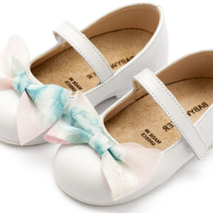 Δερμάτινο Γοβάκι Μονή Μπαρέτα Χρατς με Σατέν Χειροποίητο Φιογκάκι