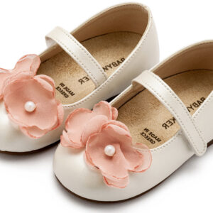 Γοβάκι Μονή Μπαρέτα Χρατς με Λουλούδια Οργάντζας BW4868-IVORY-PINK